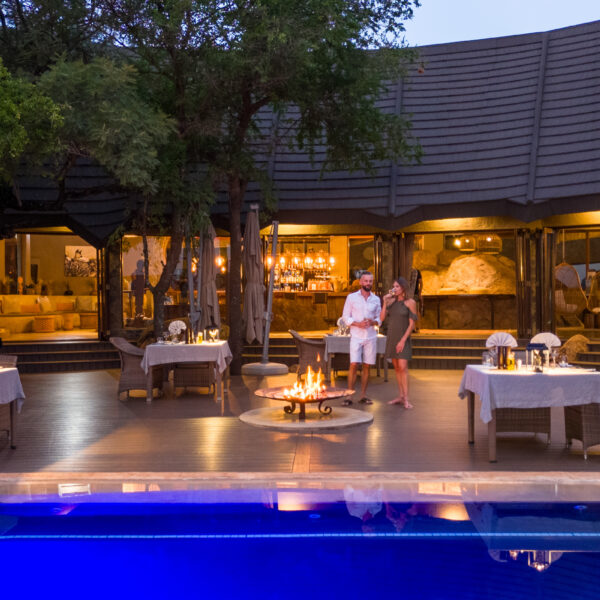 Dining options at this outstanding Madikwe lodge includes the main deck, which overlooks an active waterhole, the elegant dining room and the vastly popular open-air traditional boma. Private dinners on the deck of your suite are also offered to couples wanting to spend time together in privacy.